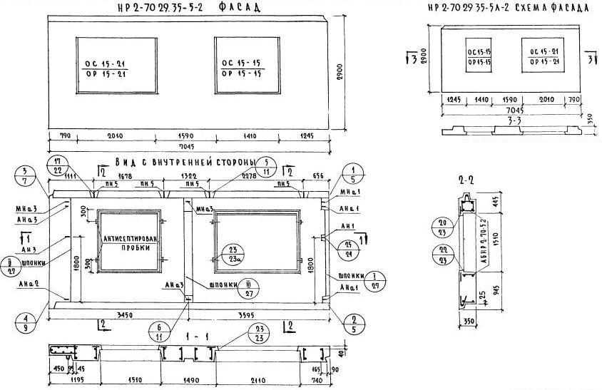 НР2-70.29.35-5л-2   Наружная стеновая панель рядовая по Серии 1.132-1.